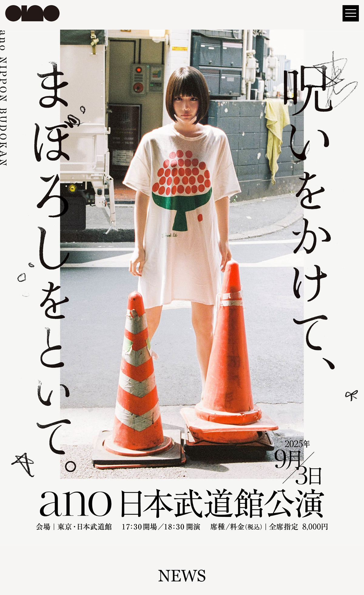 ano、自身初となる日本武道館公演を2025年9月3日(水)に開催!公演に関する各種情報を掲載しています。