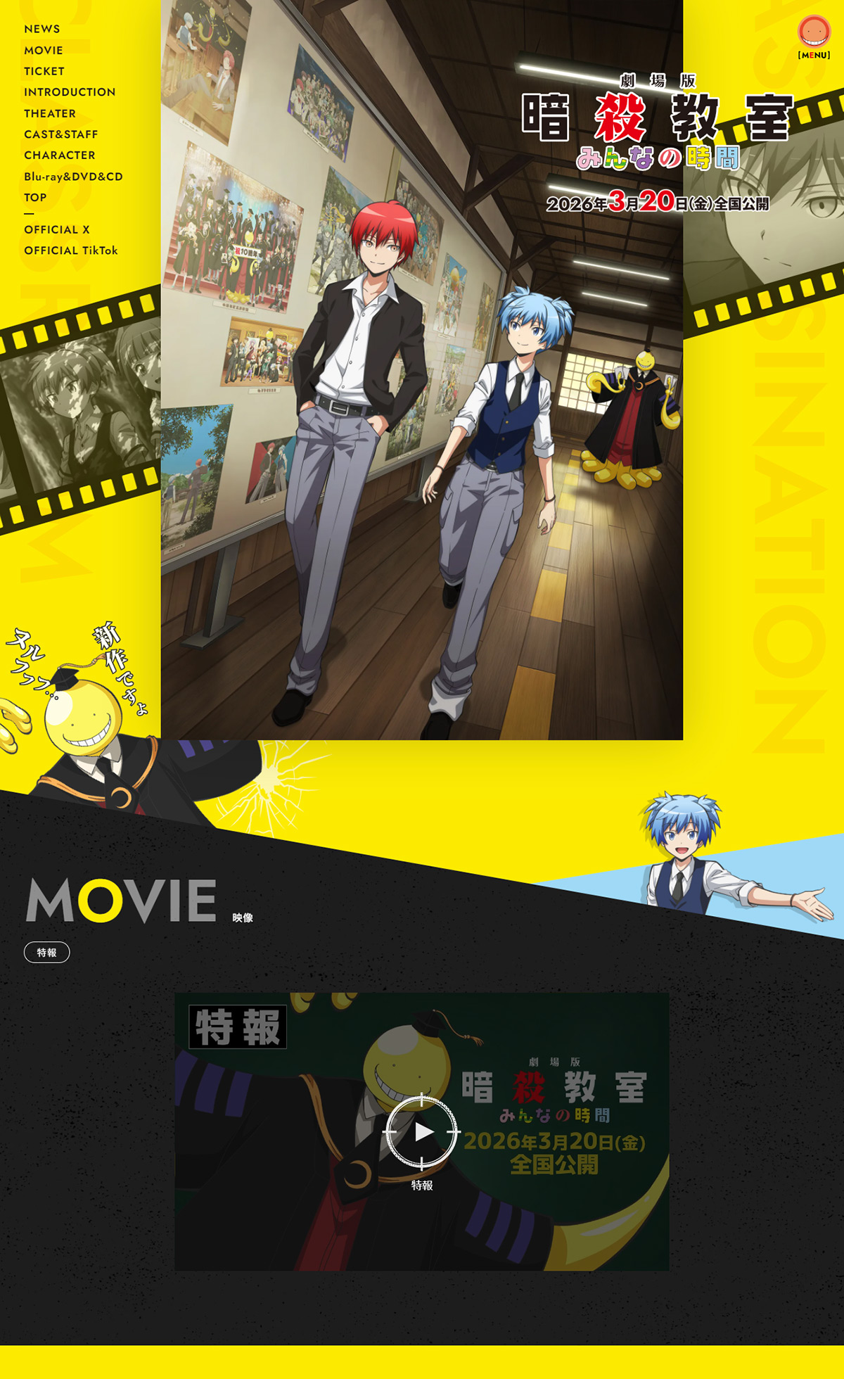TVアニメ「暗殺教室」10周年プロジェクト第3弾。『劇場版「暗殺教室」みんなの時間』2026年3月20日(金)全国公開。