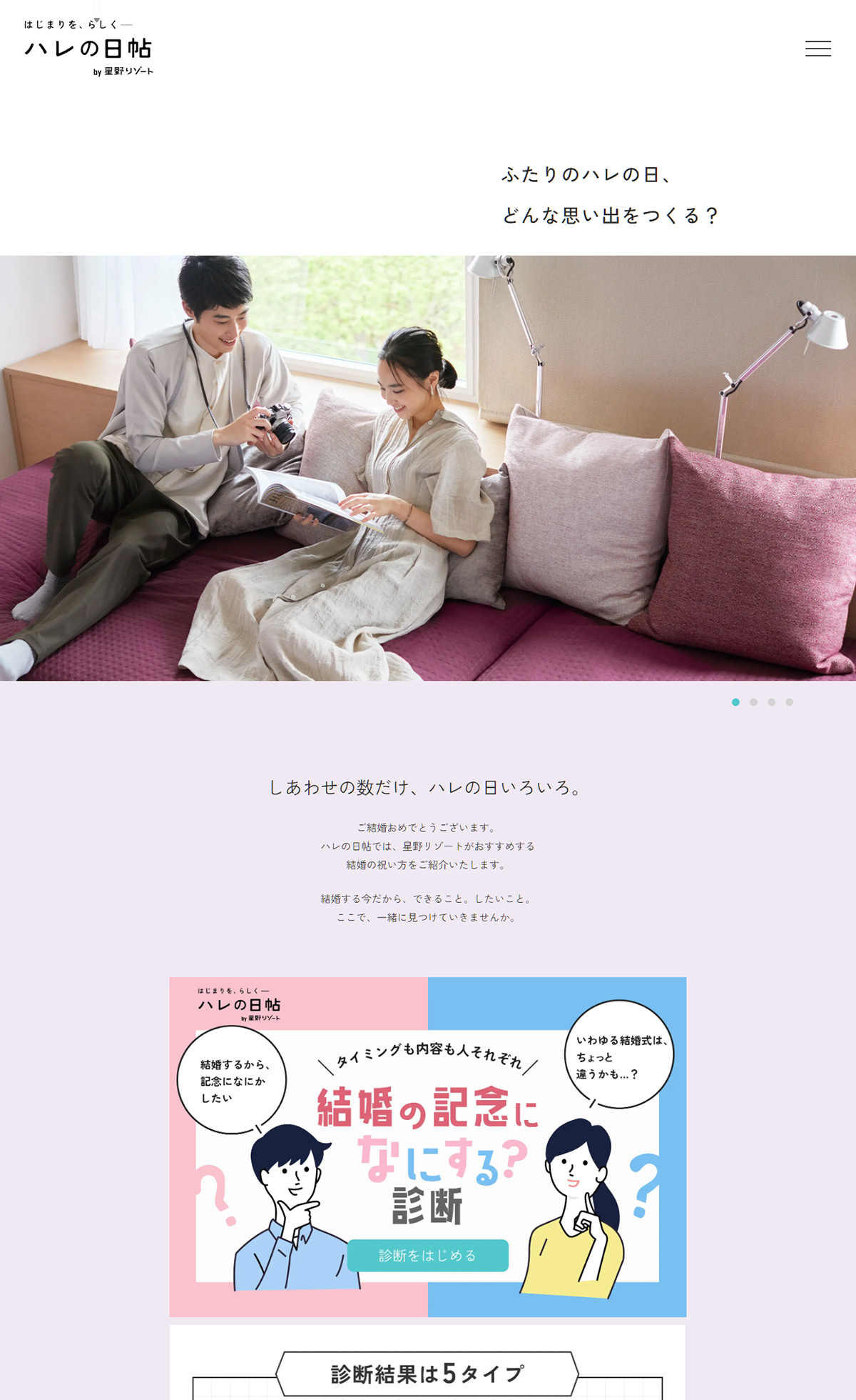 ハレの日帖では、星野リゾートがおすすめする結婚の祝い方をご紹介いたします。結婚する今だから、できること。したいこと。ここで、一緒に見つけていきませんか。