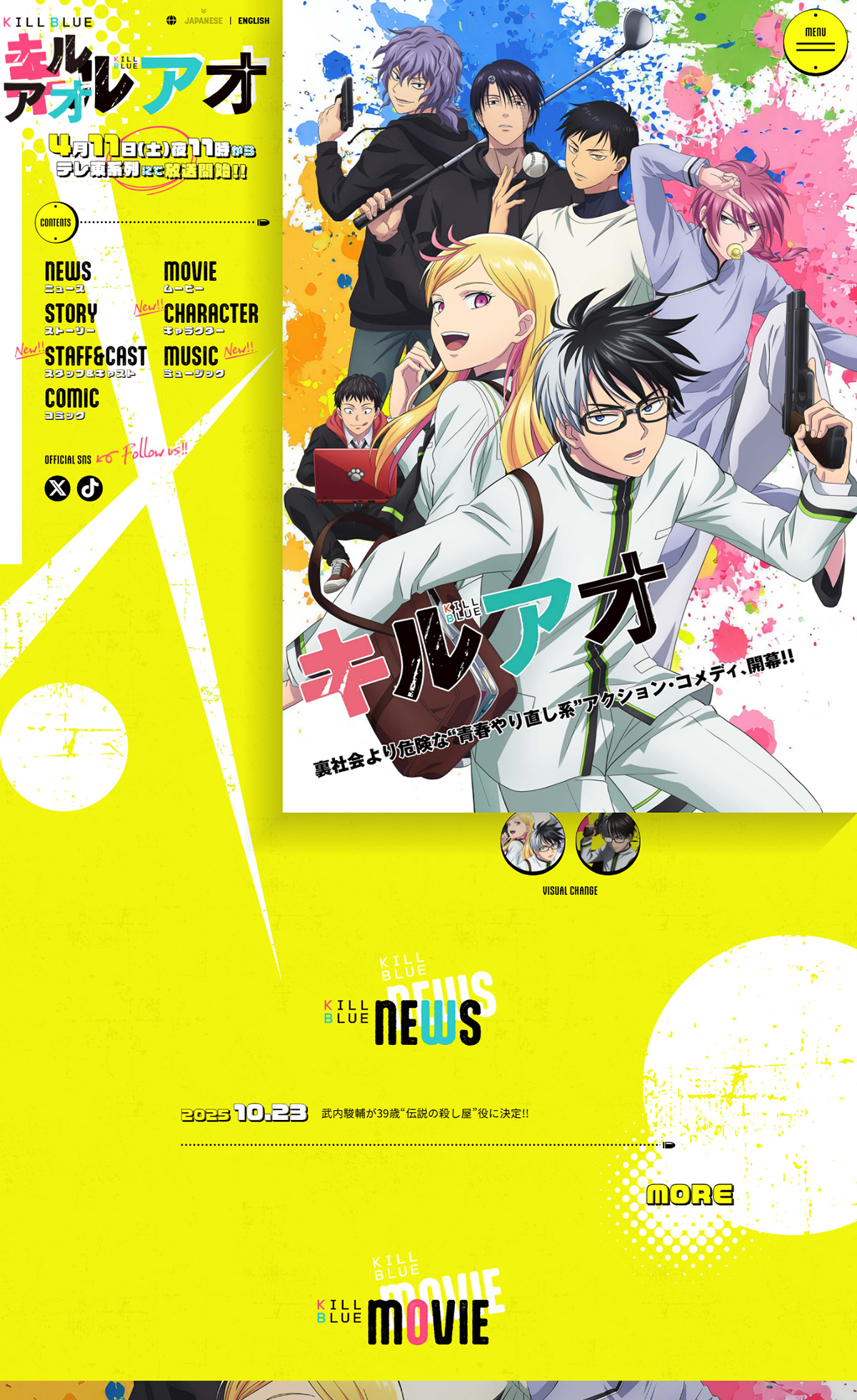 TVアニメ「キルアオ」が4月11日(土)夜11時からテレ東系列にて放送!!「黒子のバスケ」の藤巻忠俊最新作、待望のアニメ化! 伝説の殺し屋39歳、中学生からやり直し。新感覚'青春やり直し系'アクションコメディ!