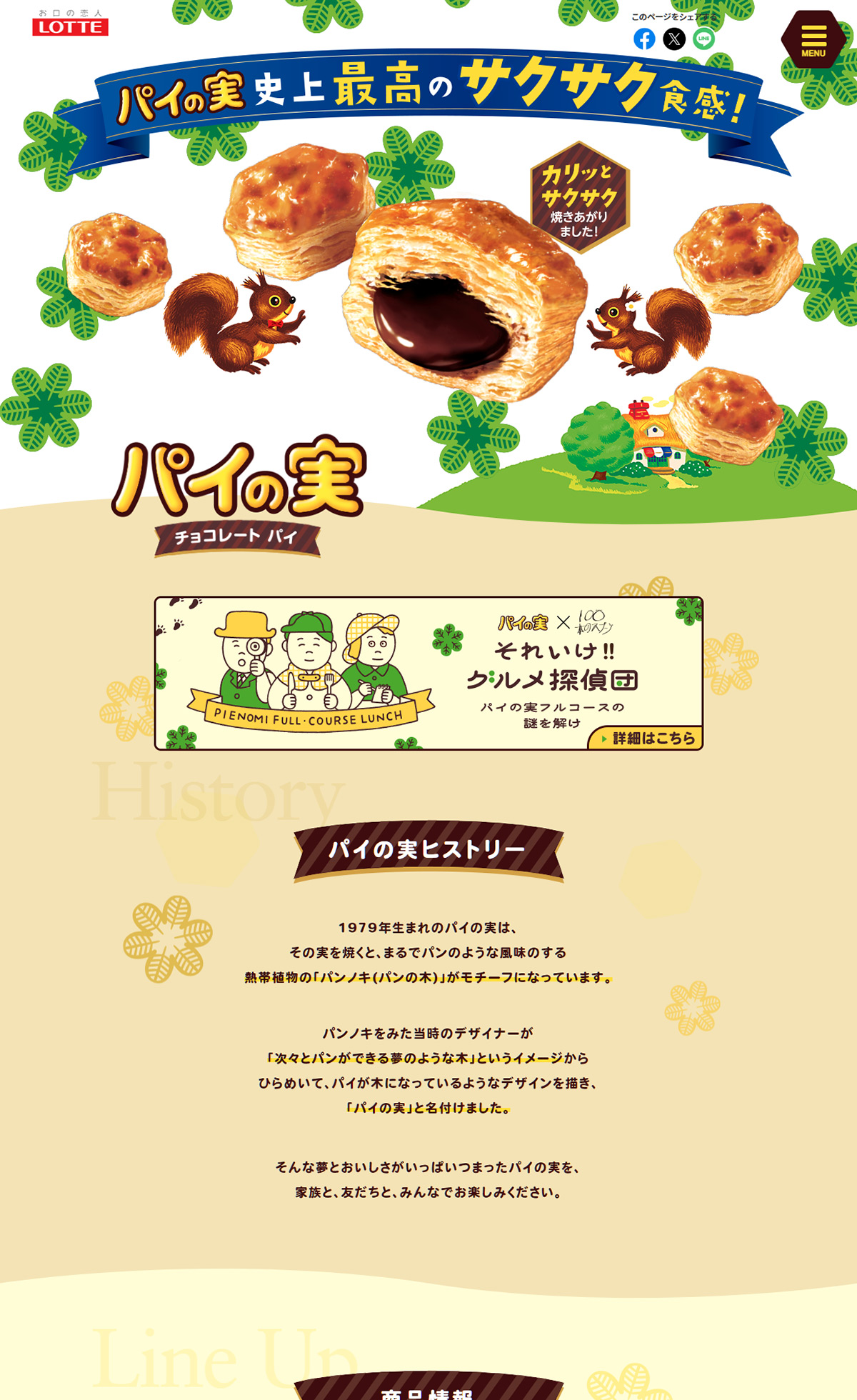 パイの実のロッテ公式ホームページです。1979年誕生以来、サクサクパイとチョコのバランスよいおいしさが楽しめる、長年愛されているロングセラー商品です。