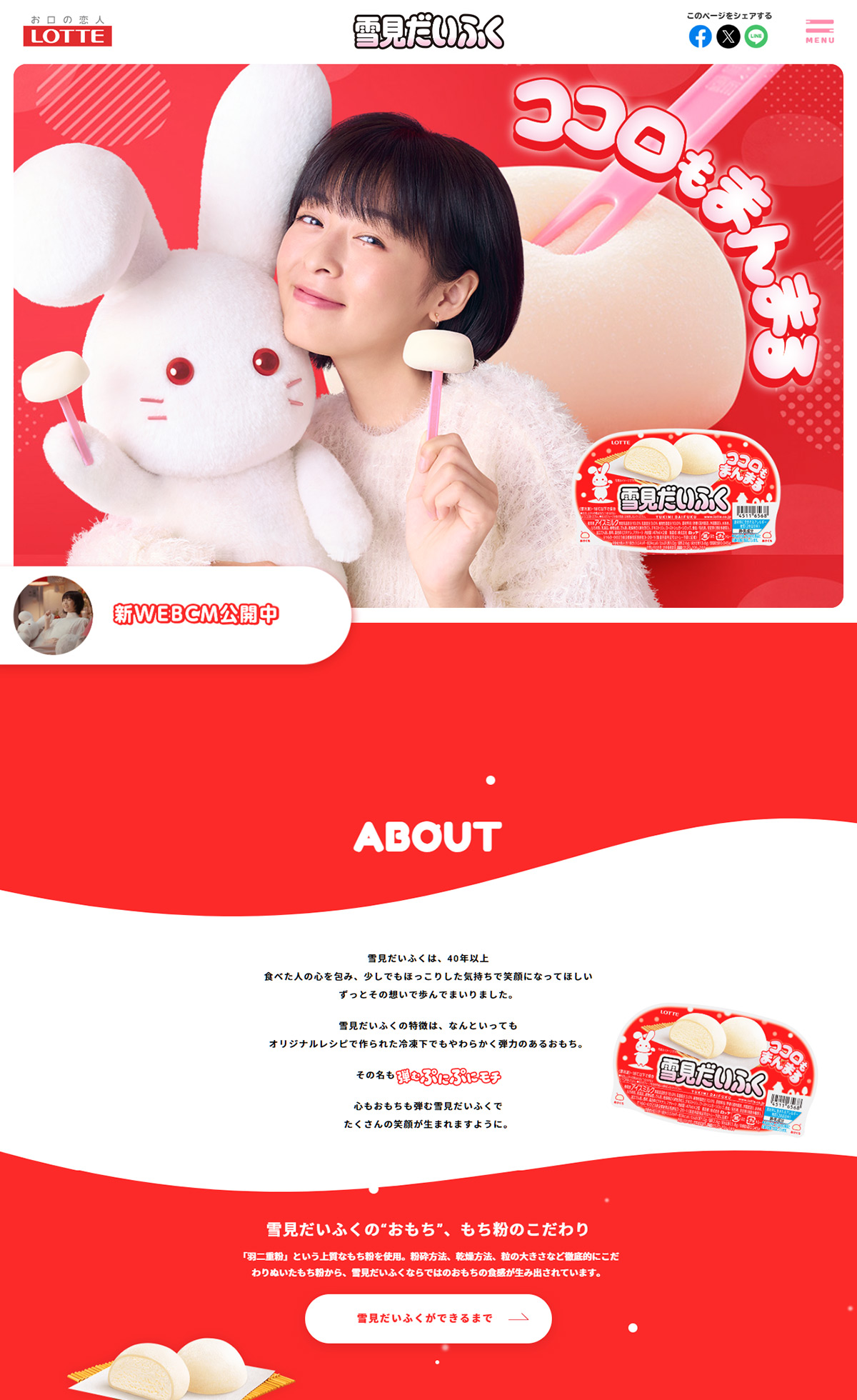 冷たくコクのあるバニラアイスを弾むぷにぷに食感のおもちで包みました。雪見だいふくならではの美味しさをぜひお楽しみください!